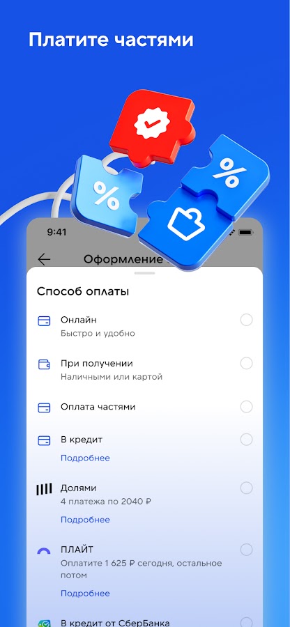 Sportmaster предлагает несколько способов получения заказов. Вы можете забрать покупки самовывозом из ближайшего магазина или заказать бесплатную курьерскую доставку на дом. Для срочных заказов доступна экспресс-доставка, которая в крупных городах занимает менее 24 часов. Приложение позволяет оплачивать покупки онлайн картой, через СБП, а также наличными или картой при получении. Доступна и удобная постоплата, а также покупка в рассрочку.