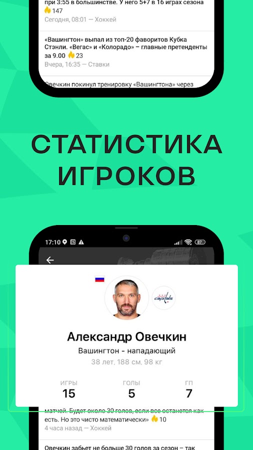 • Показатели xG (ожидаемые голы) для главных футбольных турниров. • Абсолютно все виды спорта! В нашем приложении вы найдете полноценные разделы с новостями, трансляциями, расписанием и многим другим по всем видам спорта: хоккей, баскетбол, биатлон, фигурное катание, бокс, UFC, теннис, автоспорт и прочие.