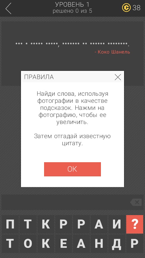 Каждая головоломка содержит известную цитату, пословицу или мудрое изречение. Для того, чтобы открыть их, надо сначала отгадать слова, используя фотографии для подсказки. Чем больше слов вы решаете, тем больше букв будет открыто в цитате! Некоторые ответы просты, над некоторыми придется поломать голову. Увлекательная игра для всей семьи!
