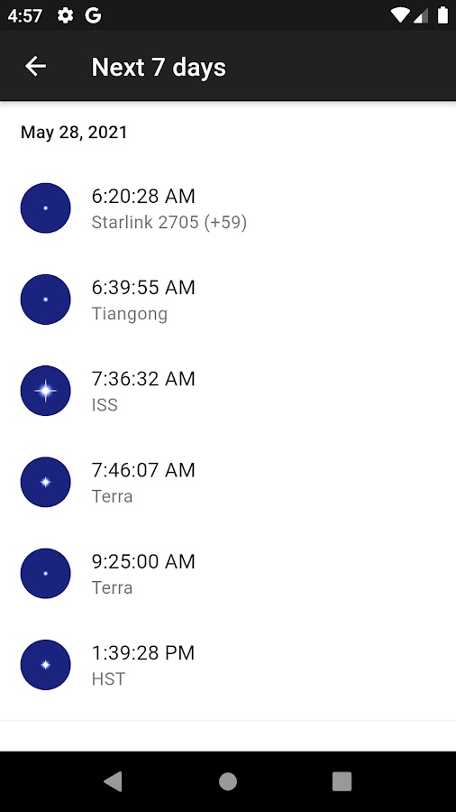 — Прогнозируйте наблюдения на 7 дней вперед или на 48 часов в прошлом (удобно, если вы хотите узнать, что это за яркий объект в небе, который вы только что видели).