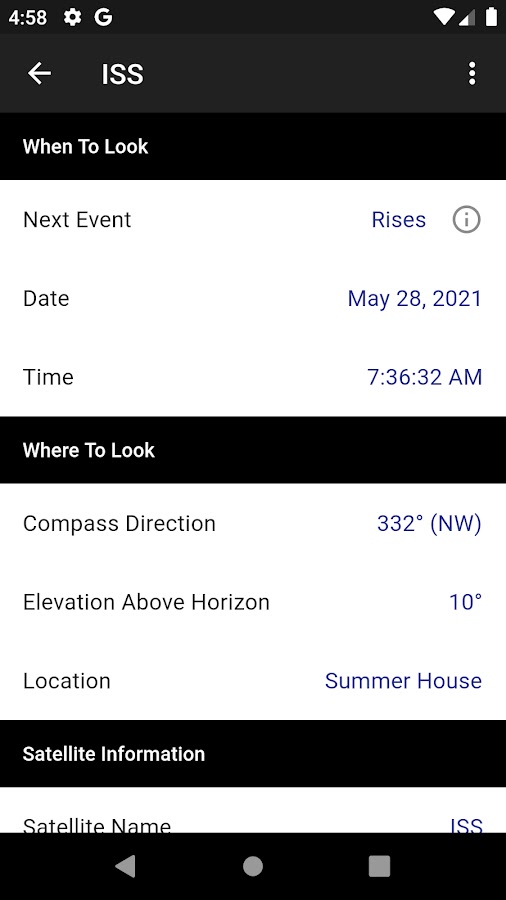 Спутник! — это простой в использовании инструмент для прогнозирования того, когда Международная космическая станция (МКС) пройдет мимо вашего местоположения или когда в небе над вами будет виден яркий спутник. Вы также можете заметить потрясающую полосу жемчуга в небе после запуска новой партии спутников Starlink.