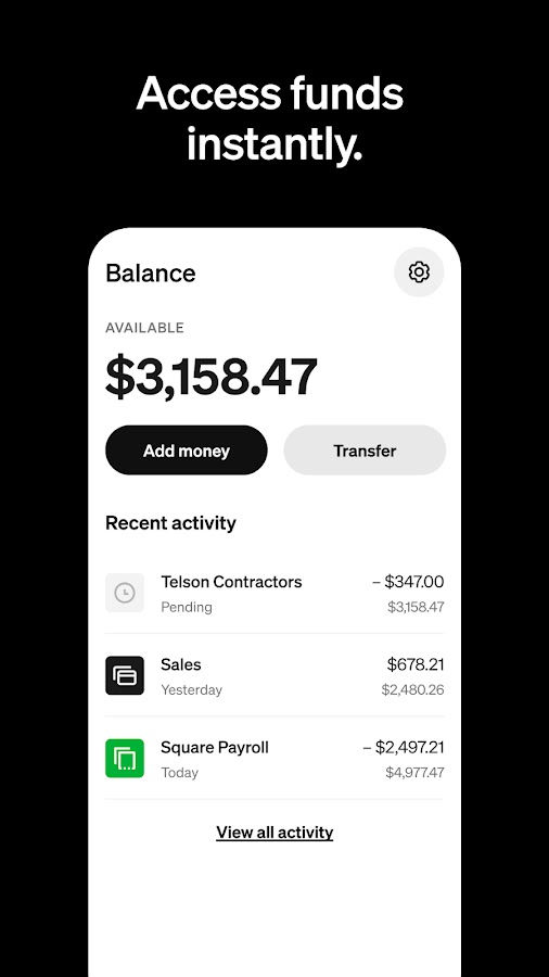 — Process transactions offline, offer preset tip amounts, and transfer funds instantly (or in 1–2 business days for free)