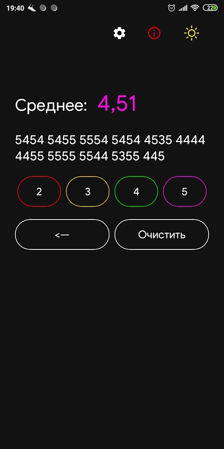 Приложение позволяет посчитать среднюю оценку из введенных пользователем.