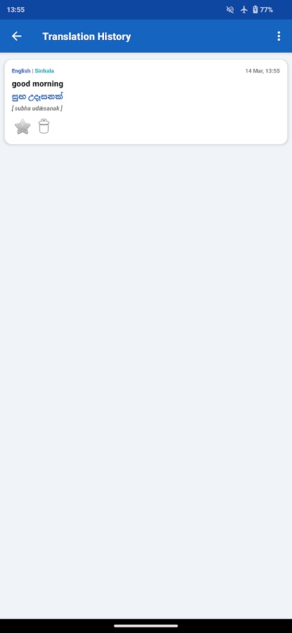 Автоматически сохраняет каждый сделанный вами перевод. Легко возвращайтесь к прошлым запросам без повторного ввода — идеально подходит для повторного просмотра слов, которые вы искали ранее.