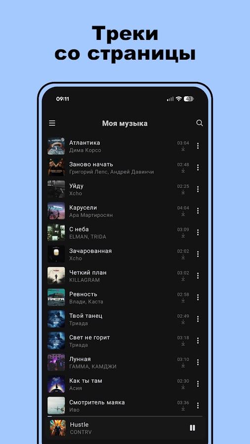 ● Вся ваша коллекция ВК: Все любимые треки и плейлисты в одном месте.