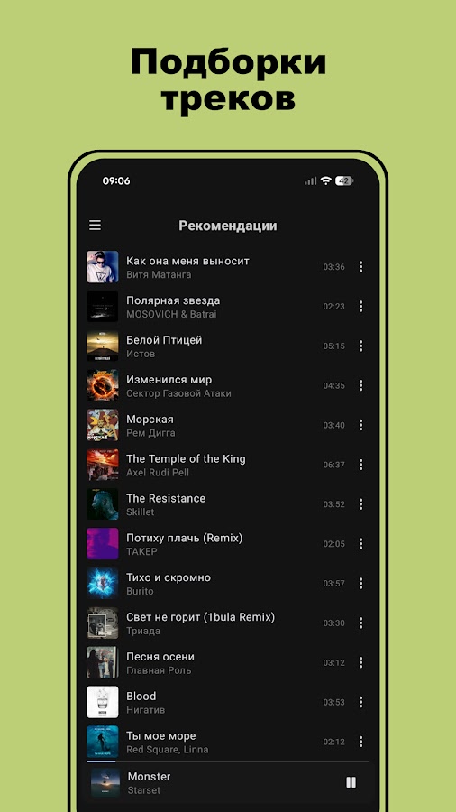 ● Умные рекомендации: Алгоритмы анализируют ваш вкус и предлагают треки, которые вам точно понравятся.