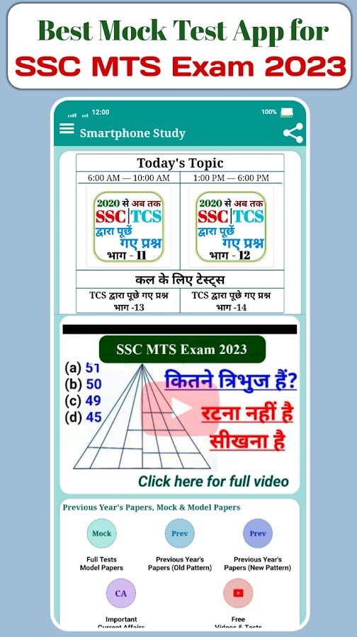 Это приложение от SmartphoneStudy.in, которое предоставляет тесты и практические наборы для экзамена SSC MTS 2025.