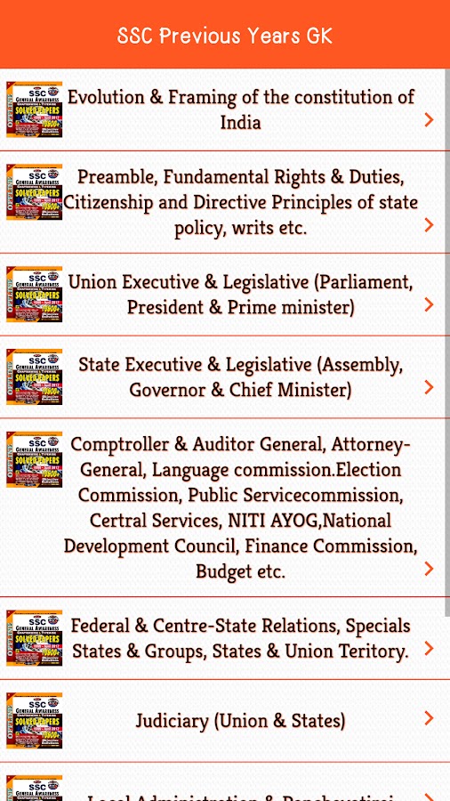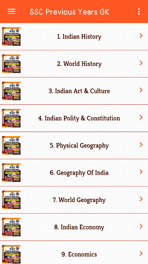 SSC за предыдущий год задавал вопросы GK (11000). Приложение полезно для абитуриентов, которые хотят сдать экзамен SSC CGL. Они могут подготовиться к экзаменам, решая вопросы SSC за предыдущий год. Это поможет похвастаться своей уверенностью.
