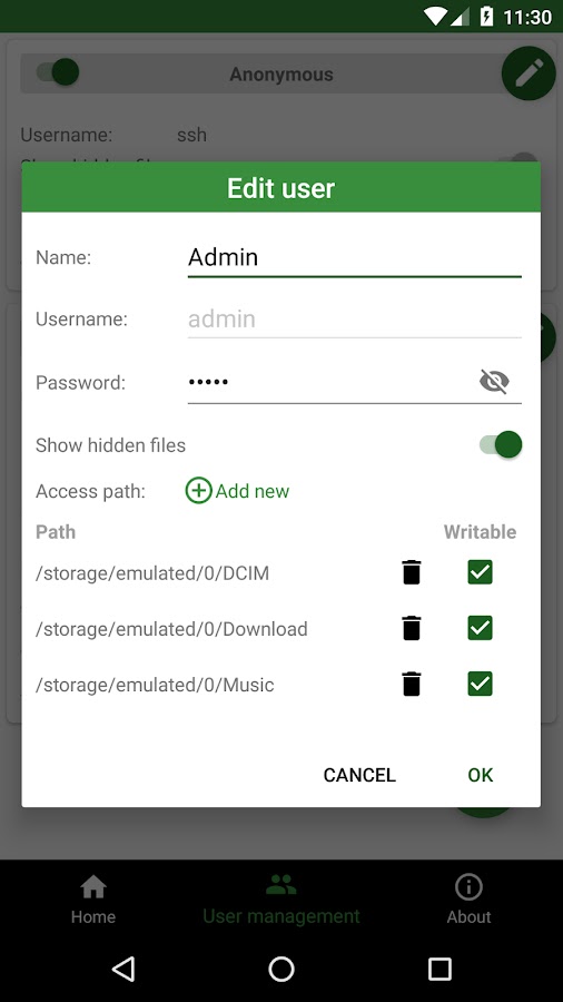 √ [Функция SFTP] Несколько путей доступа для каждого пользователя: любые папки во внутренней памяти или на внешней SD-карте