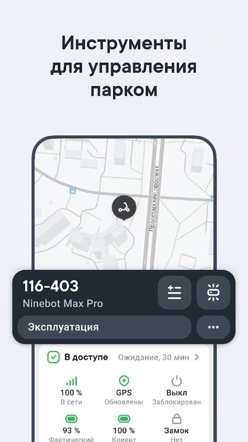 Все обслуживание электросамокатов и другого шерингового транспорта от ремонта и логистики до замены батарей и безопасности в одном приложении.