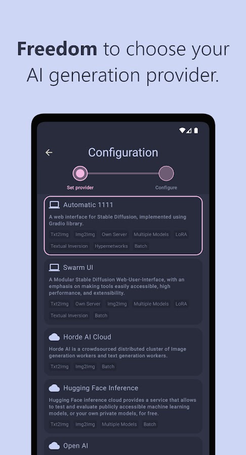 SDAI — это не просто еще одно приложение для создания арта с помощью ИИ, это инструмент, который позволяет вам творить без ограничений. Благодаря свободе выбора поставщика генерации и возможности работать в автономном режиме, вы можете воплотить в жизнь свои самые амбициозные идеи в любое время и в любом месте. Кроме того, будучи проектом с открытым исходным кодом, вы не просто пользователь — вы можете стать частью эволюции SDAI.