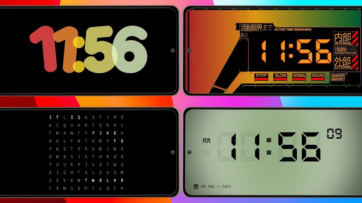 Преобразите свой экран с помощью разнообразных полноэкранных цифровых и аналоговых часов: