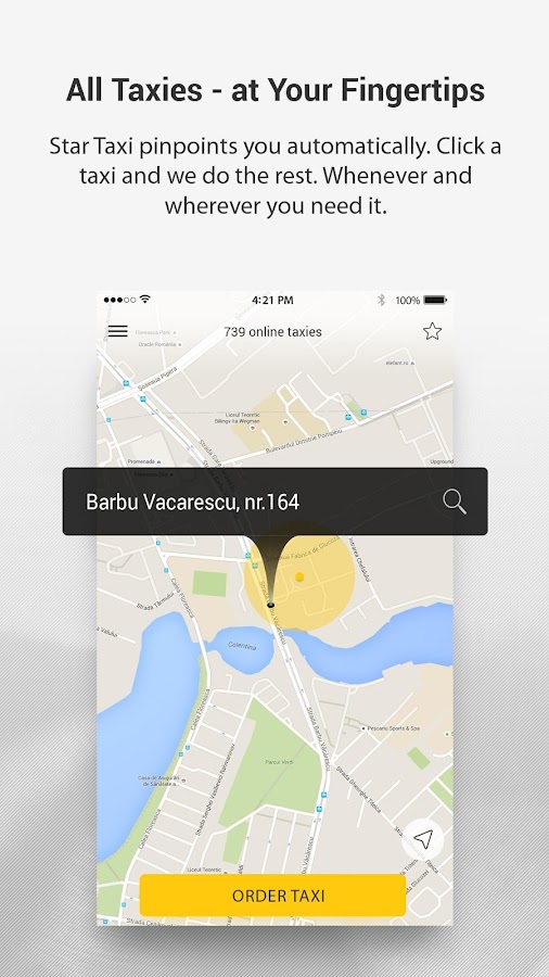 Вызовите такси онлайн, через несколько секунд, прямо из приложения Star Taxi! Со Star Taxi все есть: