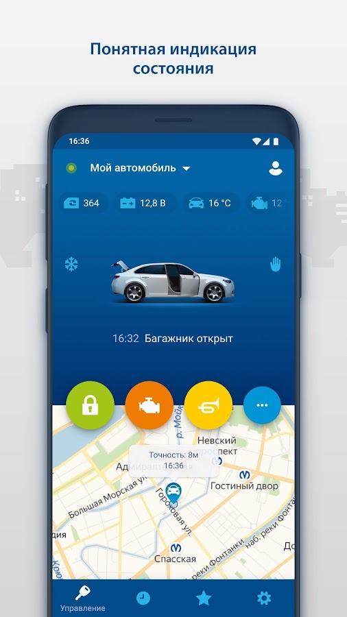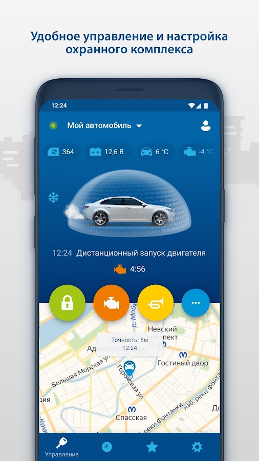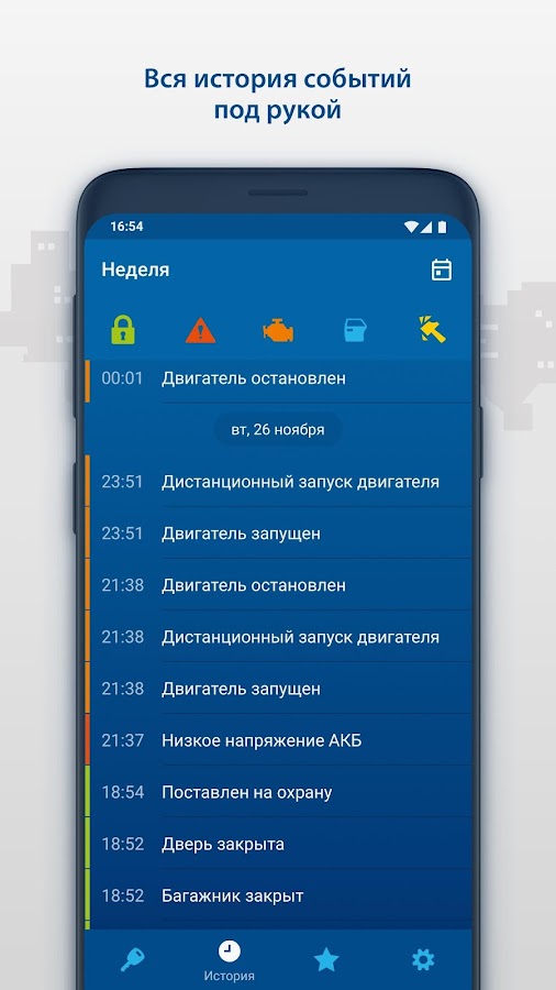 — Получайте PUSH-уведомления о событиях, происходящих с автомобилем (например, тревога, запуск двигателя, снятие с охраны)