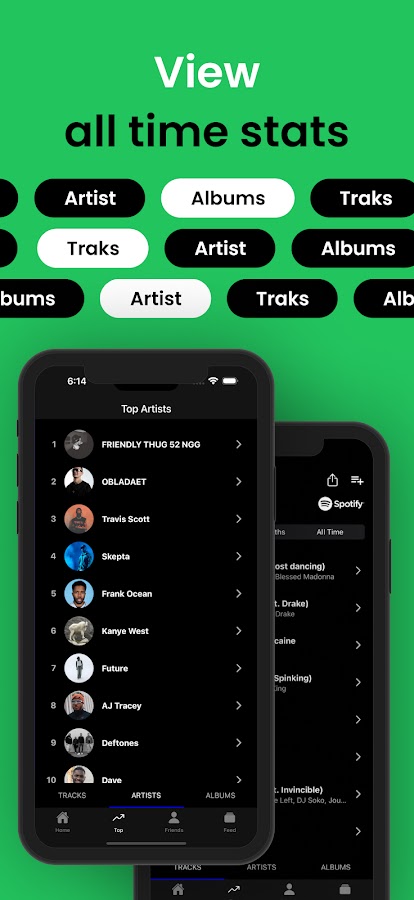 ➜ Просматривайте много статистики и крутых графиков вашей истории прослушивания.