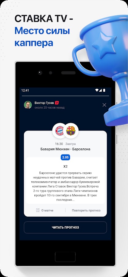 Скачайте приложение СТАВКА TВ — прогнозы на спорт для Android бесплатно - последняя версия (18.0) уже доступна для установки на ваш телефон или планшет.