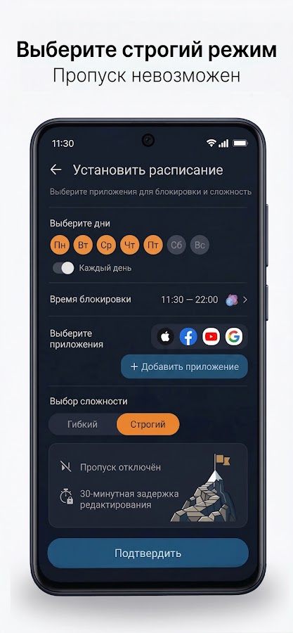 Оставайся сосредоточенным, блокируя приложения, которые отнимают твоё время.