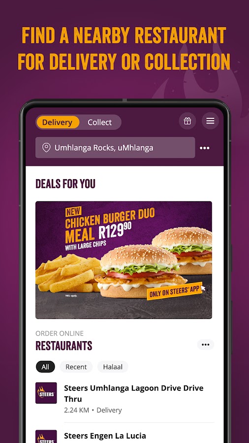 Используйте это приложение для заказа из избранных ресторанов Steers в Южной Африке.
