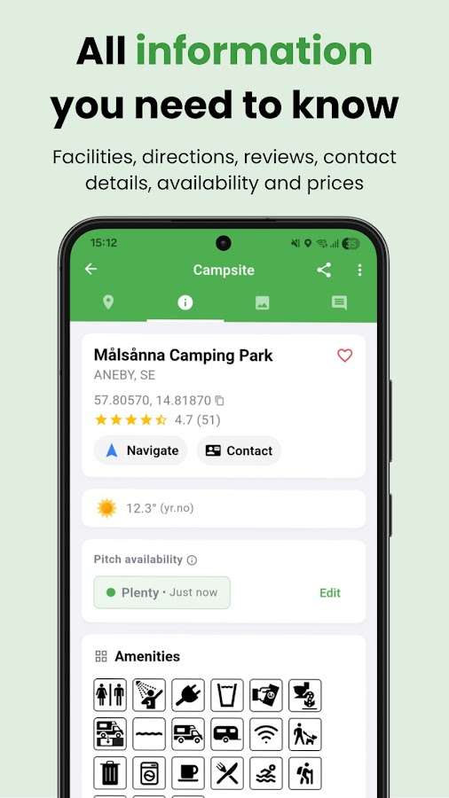 • Интерактивные карты: просматривайте кемпинги поблизости от вашего местоположения, включая спутниковый режим для детального просмотра.