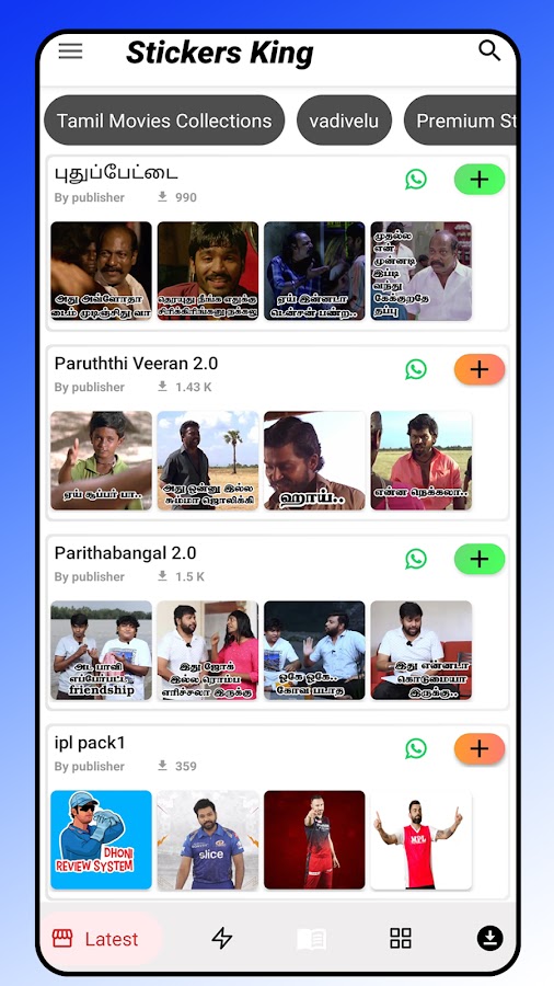💯 Наклейки WhatsApp Тамил и Король стикеров.