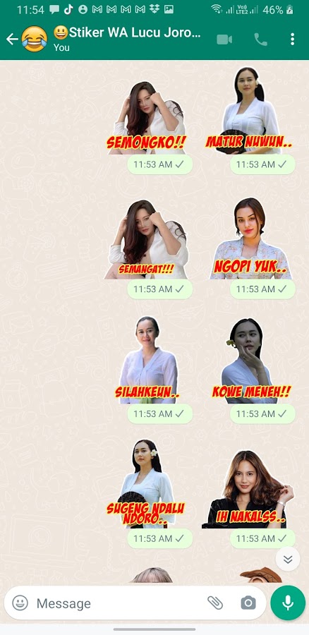 5. Откройте приложение WA, затем выберите меню стикеров. затем вы найдете несколько стикеров, которые вы только что загрузили, в своем приложении чата.