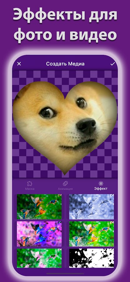 ★ Вставьте фото или видео, примените эффекты и анимацию.