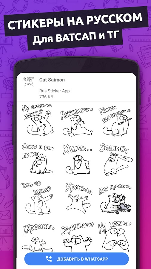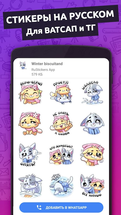 Скачайте приложение Стикеры для Ватсап на Русском для Android бесплатно - последняя версия (52.0) уже доступна для установки на ваш телефон или планшет.