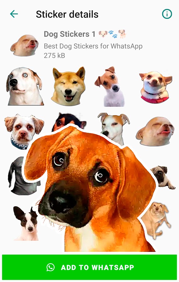 Скачать стикеры для ватсапа собаки, добавьте новый набор стикеры мемы с собаками и смешные собаки стикеры, чтобы выразить свои эмоции и повеселиться!