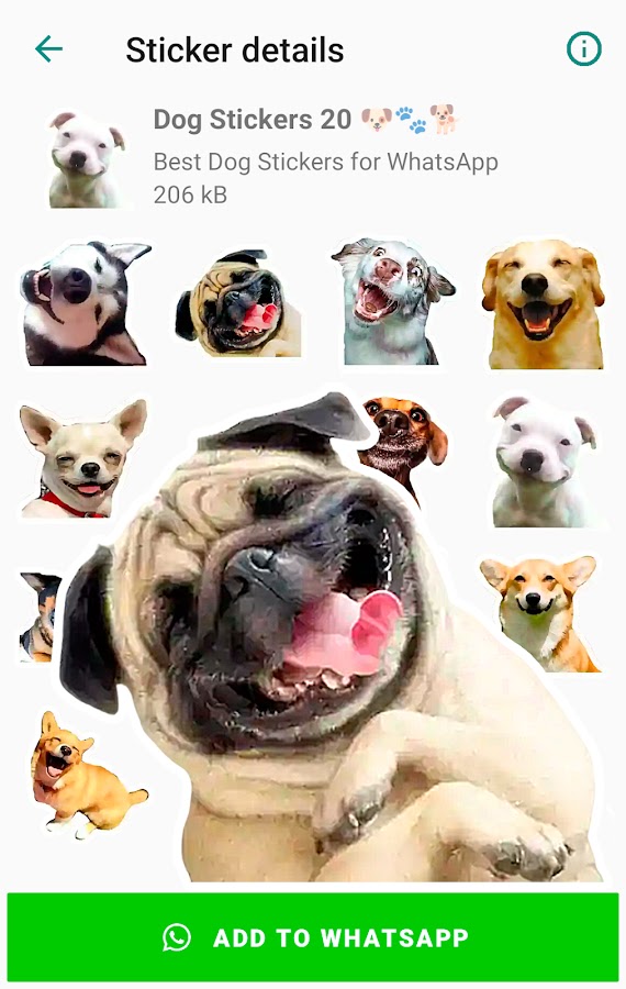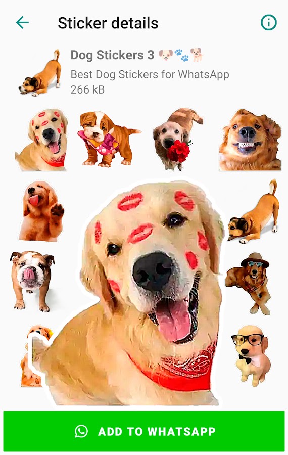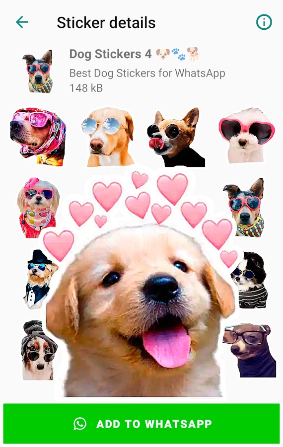 В этом приложении лучшие собаки стикеры для WhatsApp! Вы можете делиться и отправлять стикеры собаки для ватсап, стикеры щенки и многое другое в чатах и сообщениях.