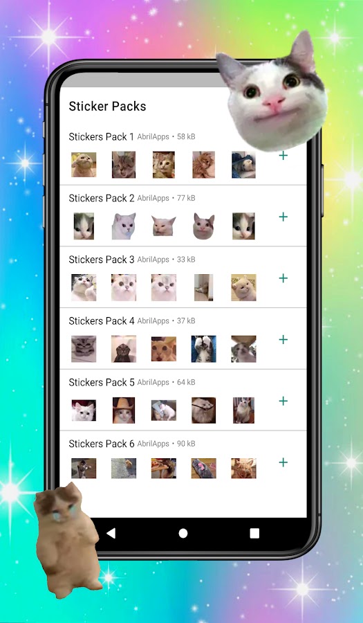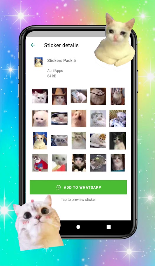 Соберите более 500 самых забавных наклеек с кошками для WhatsApp, в этих наклейках с кошками вы найдете: счастливых кошек, забавных кошек, грустных кошек, злых кошек, влюбленных кошек, кошачьи мемы для WAStickers и многое другое!