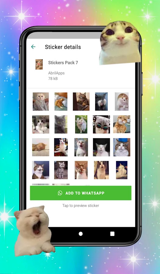 Загрузите самые смешные стикеры с кошками для WASticker, красивые кошки, стикеры с любимыми кошками, милые котята, известные кошки и кошачьи смайлики.