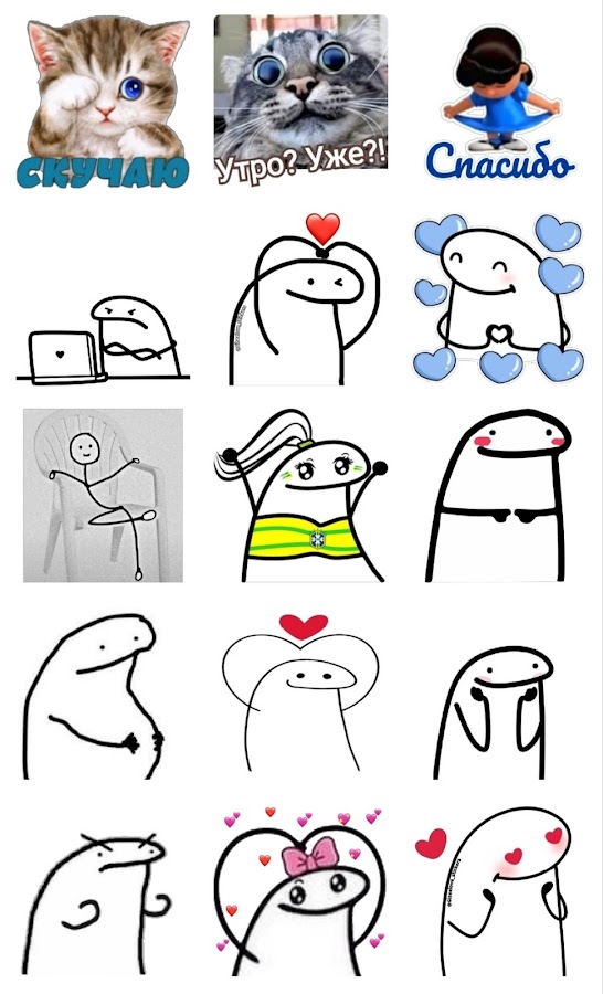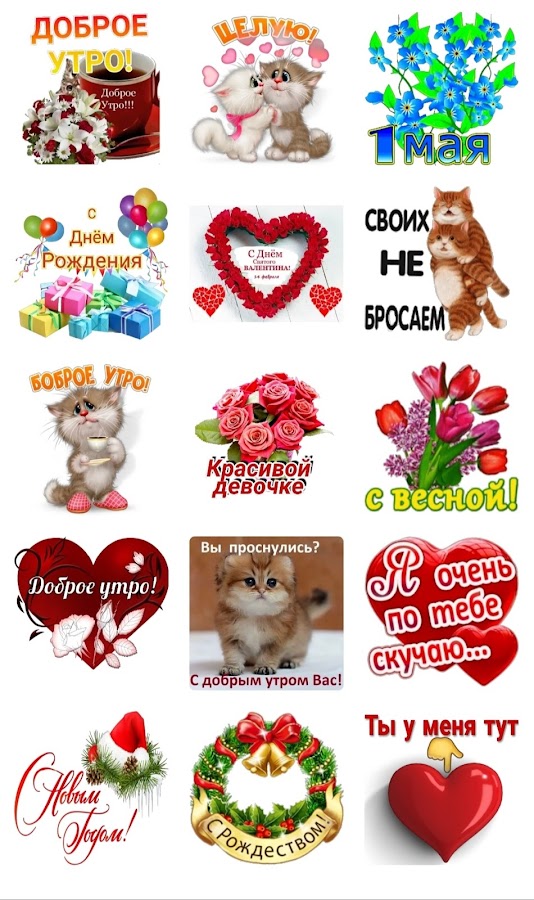 Наши стикеры предлагают разнообразные варианты для выражения различных эмоций и ситуаций — от веселых и игривых до серьезных и трогательных.