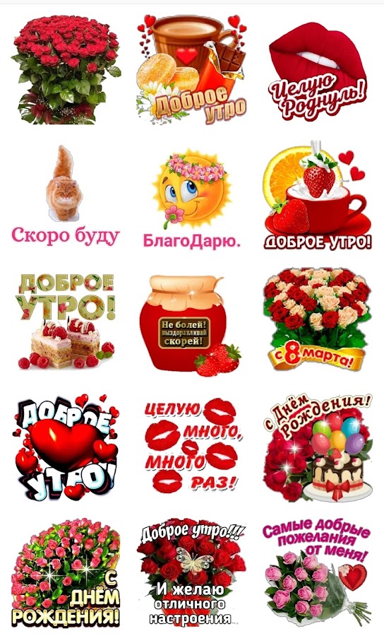 Наше приложение предлагает вам уникальную коллекцию стикеров, которые помогут вам начать день с улыбки, пожелать близким хорошего вечера и пожелать спокойной ночи в самый теплый и сердечный способ.