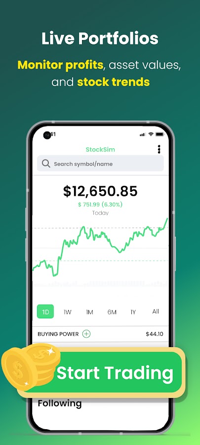 StockSim — это лучший симулятор фондового рынка, позволяющий торговать на бумаге, используя данные о текущих акциях по всему миру. Идеально подходит как для новичков, обучающихся инвестированию, так и для экспертов, тестирующих торговые стратегии.