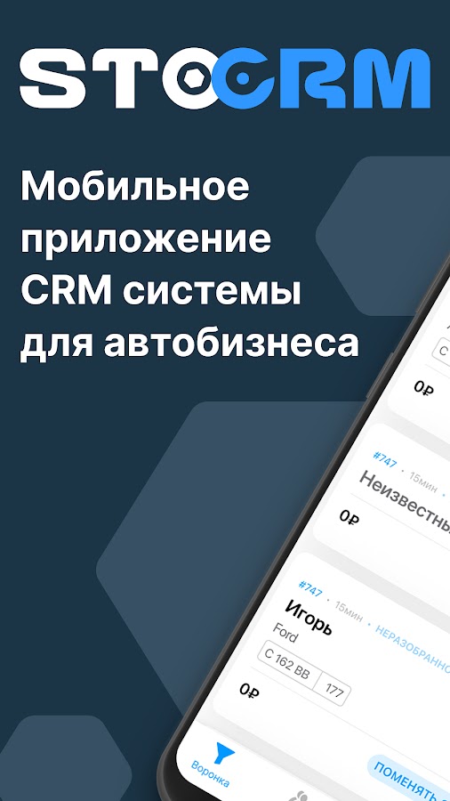 STOСRM – учетная программа для автосервиса и магазина запчастей. В мобильном приложении мы реализовали основные функции программы STOCRM, которые помогут проще и быстрее записывать клиента на автосервис и работать рядом с транспортным средством без персонального компьютера.