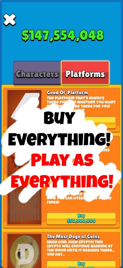 **НОВИНКА** Покупайте, чтобы потратить все свои с трудом заработанные деньги на новые скины и персонажей! Играйте за все, что только можно себе представить, и настраивайте по своему вкусу!!