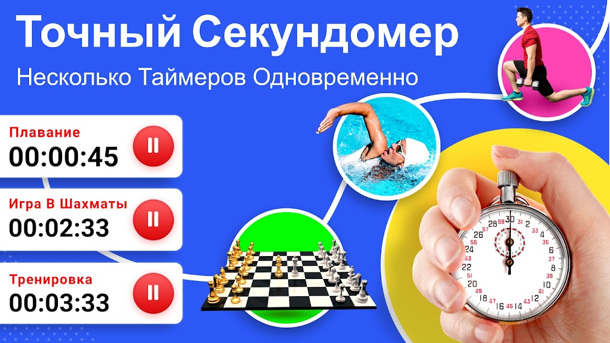 Хотите узнать, сколько времени вам требуется, чтобы пройти круг, приготовить определенное блюдо, закончить главу или сыграть в игру? Самое простое в использовании приложение большой секундомер здесь для вас. Этот бесплатный секундомер сделает вашу жизнь проще благодаря своим удивительным функциям. Будь то тренировка или работа, это приложение Секундомер можно легко использовать ежедневно. Часы с таймером помогут вам точно измерить прошедшее время. Вы знаете, что польза от использования приложения-секундамер заключается в том, что оно улучшает дисциплину и внимательность.