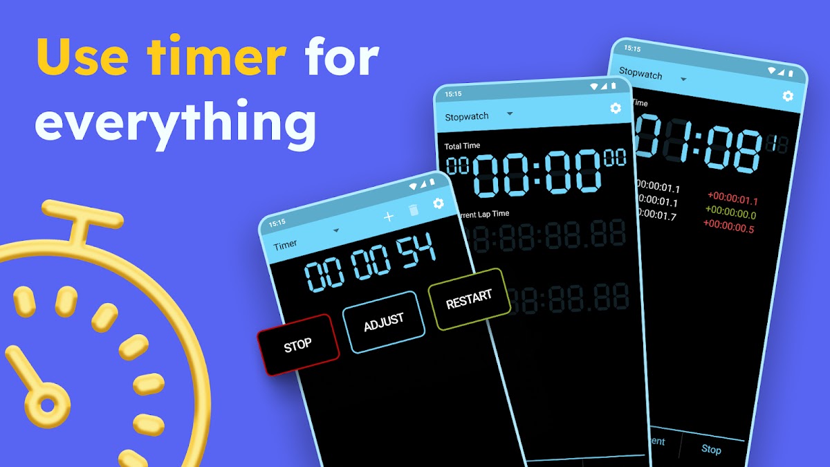 Скачайте приложение Цифровой таймер и секундомер для Android бесплатно - последняя версия (6.2.3) уже доступна для установки на ваш телефон или планшет.