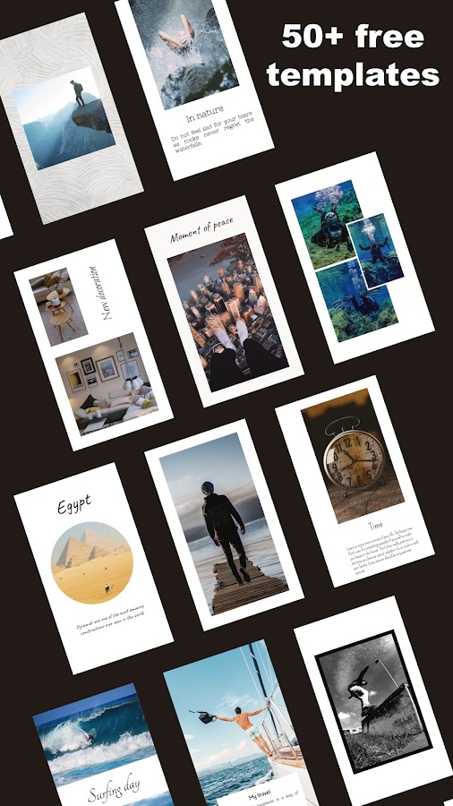 Бесплатное и удобное в использовании приложение, где можно выбрать один из наших многочисленных шаблонов. Настройте фон для вашей истории, выберите изображения из вашей галереи или камеры, и готово! Можете поделиться своей историей!