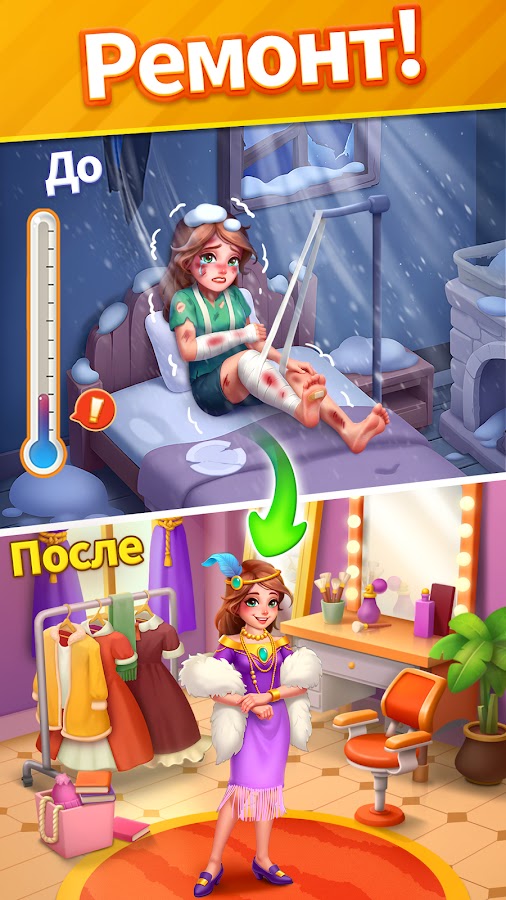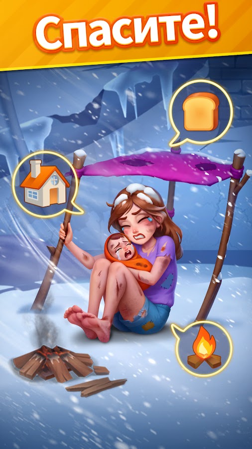 ⭐Тебе предстоит решать занимательные головоломки три в ряд, чтобы обустроить и восстановить полуразрушенный дом, помочь персонажам навести порядок, защитить бедную маму и девушку от холода, огня и голода! СОС!