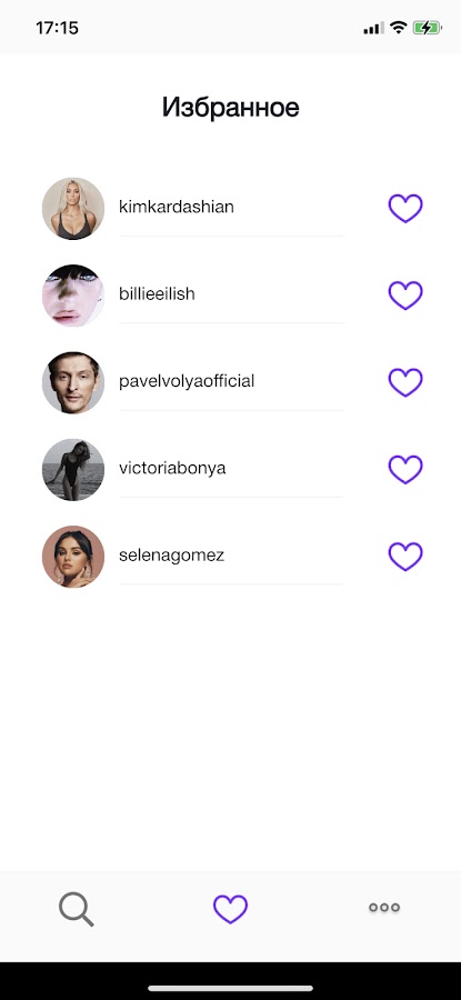 Добавляй одним нажатием профили друзей, знаменитостей и блогеров в избранное для быстрого доступа к любимым профилям.