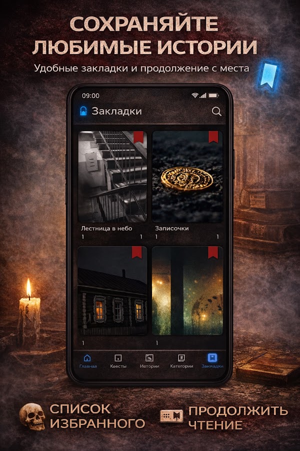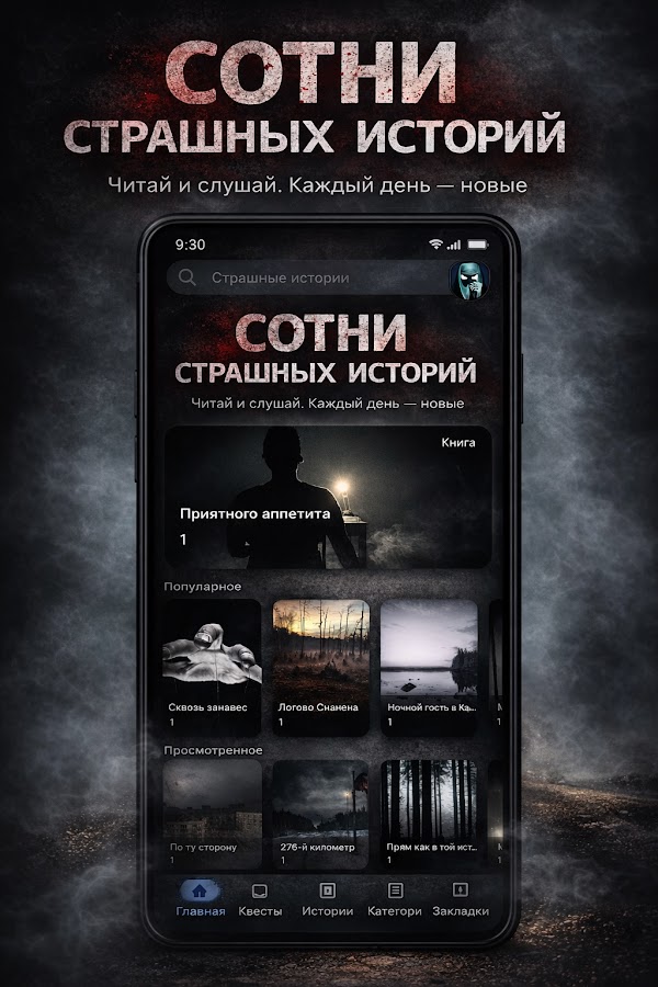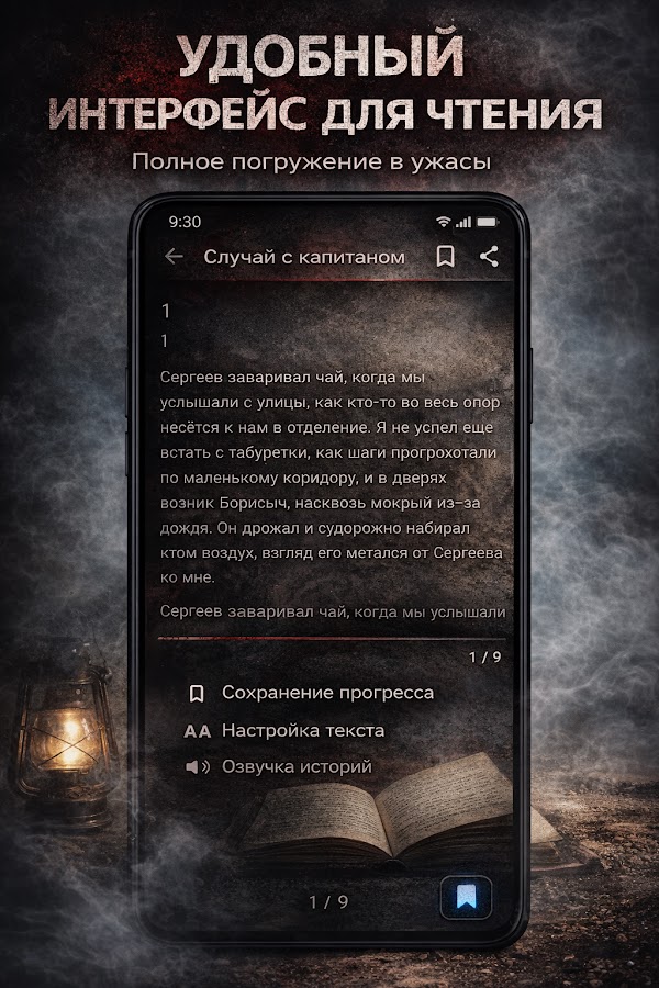 Не всегда есть время читать? Не беда! В приложении встроен удобный плеер. Теперь вы можете страшные истории слушать в дороге, на пробежке или в полной темноте перед сном. Профессиональная озвучка и атмосферные звуковые эффекты создадут эффект полного присутствия.