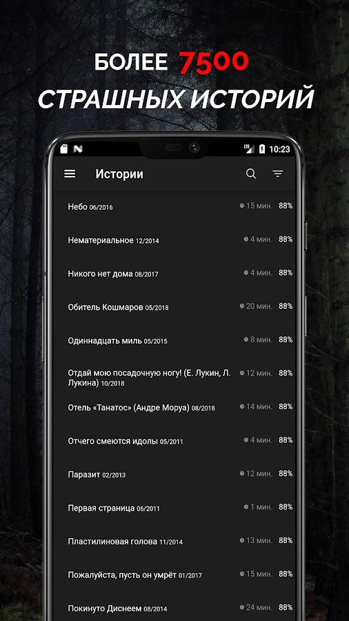 Вас ждут более 7500 историй, ужасов и городских легенд на любой вкус, с регулярным обновлением контента.