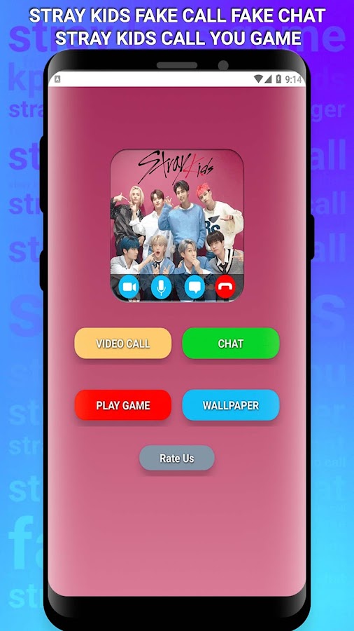 С помощью этого видеозвонка и чат-игры Stray Kids вы узнаете, как легко вам почувствовать себя рядом со своим кумиром. Вы можете выбрать один из трех вариантов связи со всеми членами Stray Kids: видеозвонок, голосовой вызов и мессенджер в чате с BTS. Чтобы сделать еще более увлекательным, внутри этого приложения для фальшивых звонков вы найдете головоломку Stray Kids и обои Stray Kids.