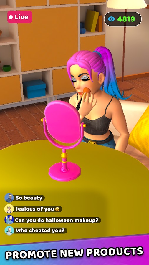 Улучшайте свою комнату, одежду и внешний вид так, как вам нравится, чтобы стать более известным и получить больше поклонников. Ваши подписчики ждут, когда вы начнете транслировать!