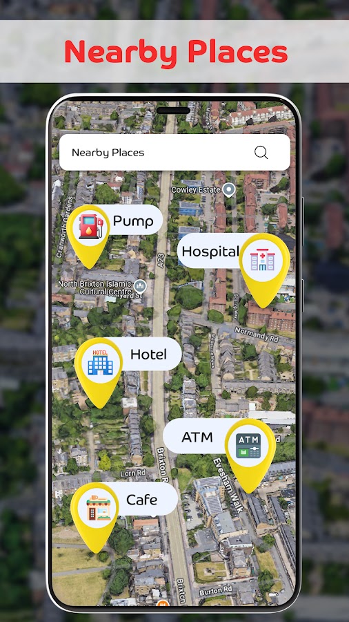 Nearby Places Finder: Быстро находите рестораны, заправочные станции, банкоматы и многое другое. Предварительно просмотрите свой маршрут с реальными изображениями на уровне улиц перед тем, как отправиться в путь. Идеально подходит для проверки ориентиров, поворотов или просто виртуального изучения места.