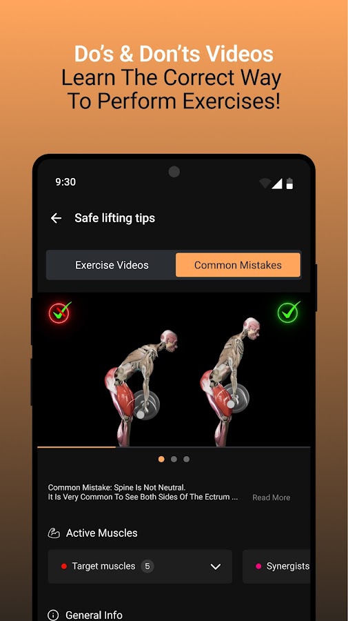 ☑️ Приложение показывает тренирующимся, какие мышцы стимулируются во время упражнений, и иллюстрирует идеальную форму и технику.