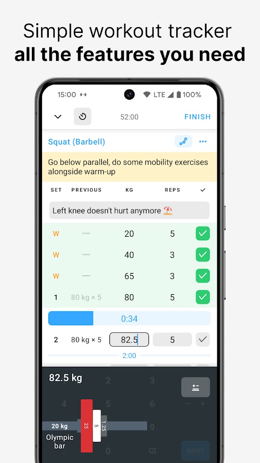 Являетесь ли вы новичком или опытным пауэрлифтером, Strong обеспечит вам все что нужно для записи ваших тренировок самым легким и быстрым способом.