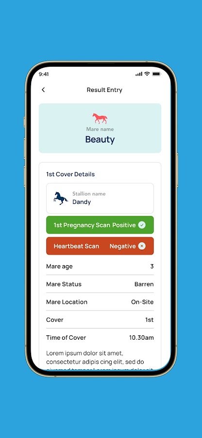 При нажатии на кобылу в списке отображается подробная информация об этой кобыле.