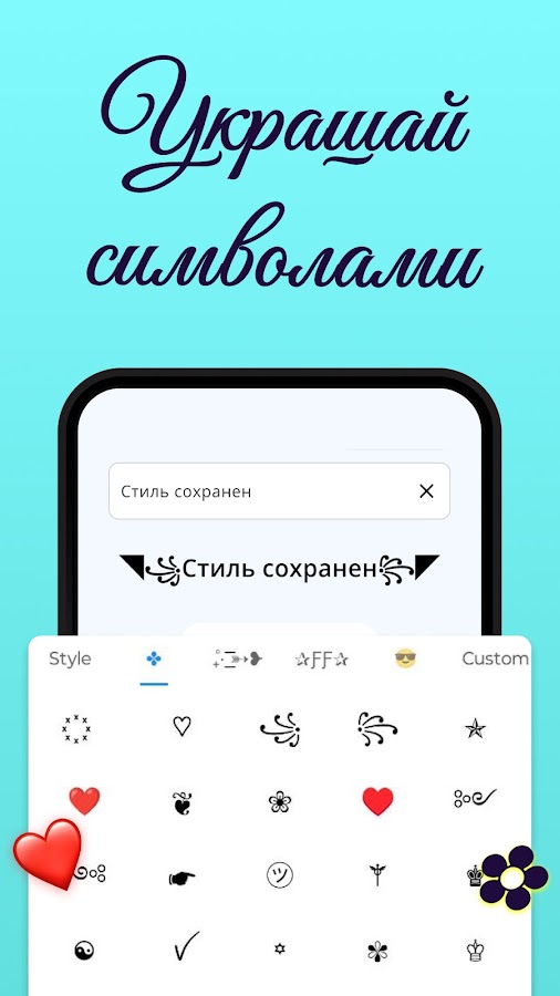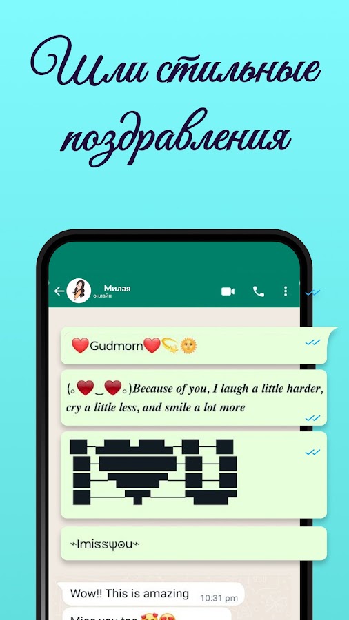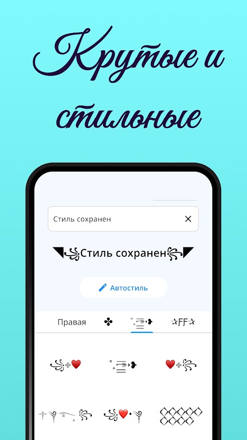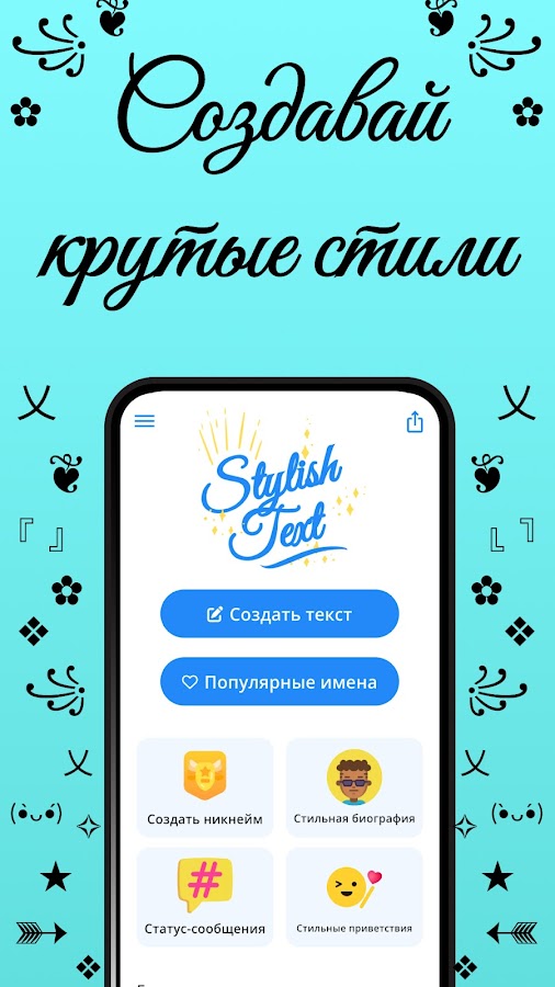 Один символ иногда стоит тысячи слов, верно? Для изменения стиля письма приложение Stylish Text — потрясающий инструмент. Оно поможет вам превратить скучные ники в стильные прозвища с помощью многочисленных символов, стилей букв для украшения ваших имен. Приложение предлагает множество символов и вариантов изменения стиля букв для оформления вашего текста. С помощью этого приложения для изменения стиля букв вы сможете сделать свой ник стильным, создать необычный текст в разных стилях, а также можете украсить его различными символами. Это помогает стильному тексту выделяться из толпы. С помощью этого приложения для изменения стиля букв у вас будет масса крутых символов, чтобы создать дизайнерский текст и произвести впечатление на своих друзей супер-пупер крутым ником или обалденно стильным текстом.